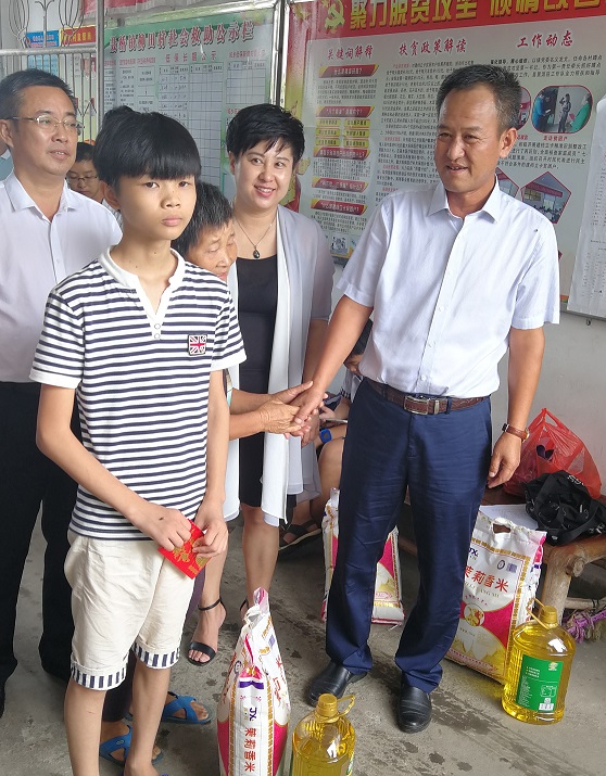 活動伊始,喬東應一行和貧困學生、家長、鎮村干部作了簡短的座談交流,認真聽取貧困家庭基本情況介紹,詢問他們目前生活、學習近況,并一一留下聯系方式結對幫扶。喬東應強調,學生是祖國的未來,是祖國的希望,困難是短暫的,面對困難我們要勇敢要堅強,江西富煌愿盡一份力量幫助他們,助他們成長、成才。同時,也對受資助學生提出殷切期望,鼓勵他們要珍惜來之不易的學習環境,珍惜十分寶貴的青春年華,以刻苦自勵的精神,學好知識、掌握本領、增長才干,為了家鄉的明天更美好,為了祖國的明天更輝煌譜寫青春華章。