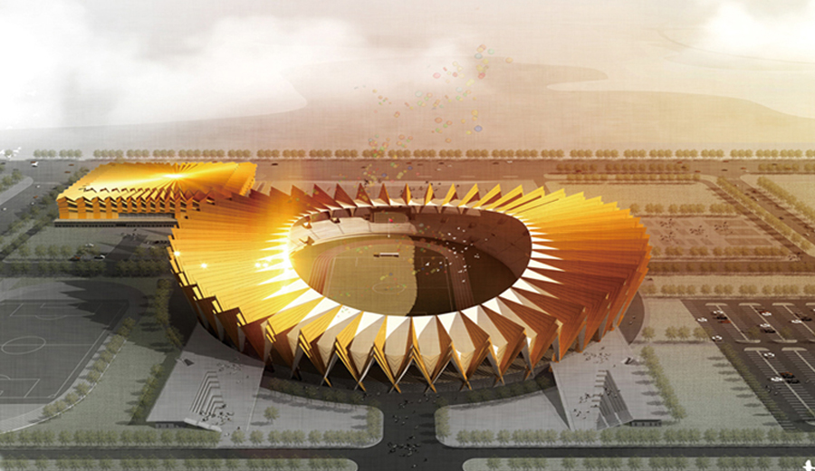銅陵市體育中心體育場(chǎng)鋼結(jié)構(gòu)罩棚,結(jié)構(gòu)形式采用懸臂鋼結(jié)構(gòu)管桁架體系,在桁架下設(shè)置V形鋼管支撐結(jié)構(gòu)